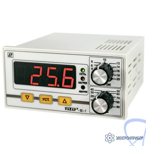 Терморегулятор Ратар-02-1 может работать по одному из четырех типов логики выходного устройства: прямой, обратный, U–образный или П–образный гистерезис. Терморегулятр работает с термопреобразователем типа п/п с полупроводниковым чувствительным элементом. Прибор имеет максимально упрощенный интерфейс пользователя. Задавать уставки можно как при помощи кнопок, так и при помощи потенциометров. При изменении положения потенциометра индикатор терморегулятора автоматически переключается с режима индикации текущего значения на индикацию значения соответствующей потенциометру уставки. Прибор имеет аварийное реле, работу которого можно включать или отключать при настройке.