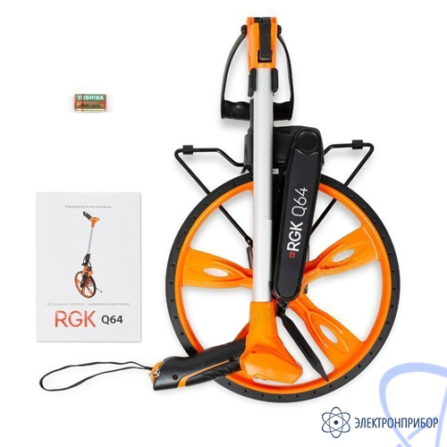 Удобство использования и транспортировки. Складная конструкция рукоятки курвиметра RGK Q64 обеспечивает удобную транспортировку устройства в автомобиле или в общественном транспорте. Подножка позволяет удерживать колесо в вертикальном положении.