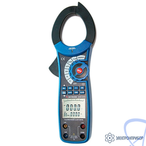 Профессиональные токоизмерительные клещи-ваттметр переменного (True RMS) тока АСМ-2353 для однофазных и трёхфазных сбалансированных нагрузок со встроенной памятью, функцией бесконтактного определения напряжения и USB-интерфейсом.