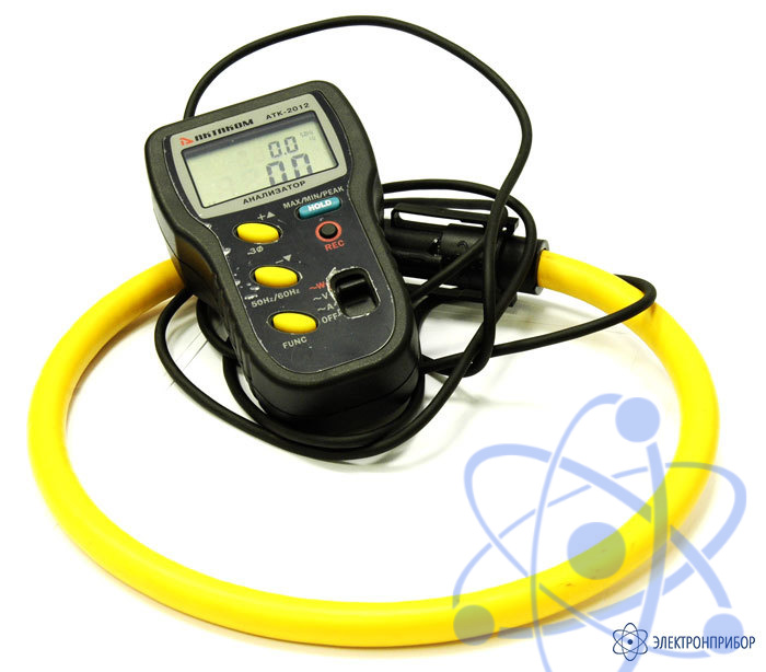 Токовые клещи АТК-2012: измерение переменного (50 или 65 Гц, True-RMS) тока 0,1 ... 3000 А и напряжения 0,1 ... 600 В; измерение частоты 45 ... 65 Гц с разрешением 0,1 Гц с погрешностью ± 0,2 Гц; непрерывный анализ до 50-й гармоники, регистрация пиковых значений (39 мкс для 50 Гц, 33 мкс для 60 Гц), программируемые коэффициенты; анализ полного искажения гармоник (до 50-й гармоники); измерение активной (0,1 ... 9999 кВт), реактивной и полной мощности, коэффициента мощности, угла сдвига фаз; расчет энергии; диаметр охвата клещей 170 мм; рабочая температура: -10 ... +50°С; питание: 1,5 В х 2; габариты 130х80х43 мм; масса 450 г.
