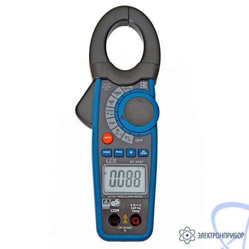 Токовые клещи DT-3347 – серия профессиональных токовых клещей для измерения постоянного и переменного тока. Клещи измеряют истинное среднеквадратичное значение (True RMS) переменного тока и напряжения. Клещи обладают различными дополнительными функциями, такими как измерение сопротивления, емкости, диодный тест и т.п. Малые размеры клещей обеспечивают удобство использования в труднодоступных местах. Клещи имеют защищенный двойной пластиковый корпус.