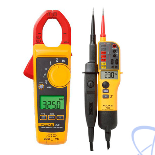 Комплект Fluke 325/T130 состоит из токоизмерительных клещей с измерением TrueRMS Fluke 325 и тестера напряжения/целостности с ЖК-дисплеем и переключаемой нагрузкой Fluke T130.