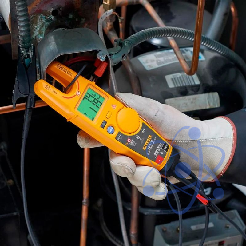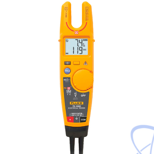 Тестер Fluke T6-1000 позволяет измерять напряжение до 1000 В переменного тока при помощи открытого захвата, исключающего контакт измерительных проводов с поверхностями, находящимися под напряжением. (При измерении напряжения необходима емкостная связь с землей, которая в большинстве случаев осуществляется через пользователя. В некоторых ситуациях может понадобиться соединение с землей через измерительный провод). Для измерений не нужно снимать соединительные изолирующие зажимы с проводов или крышки с оборудования. Напряжение измеряется на проводах калибром до AWG 4/0 (120 мм2) с током до 200 А. Это революционный переворот в вашей работе. Безопаснее. Быстрее. Проще.