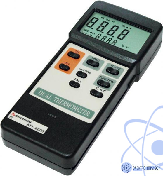 Двухканальный портативный цифровой измеритель температуры с возможностью передачи данных в ПК АТТ-2000 имеет хорошую точность измерений, современный дизайн, прочный и удобный корпус. Прибор снабжен рядом дополнительных функций, среди которых удержание показаний, отображение максимальных и минимальных значений в ходе измерения, определение разности температур.