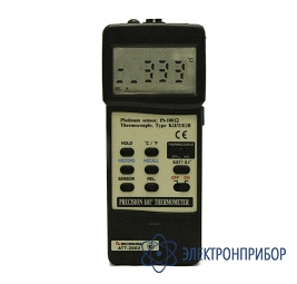 Профессиональный прецизионный цифровой измеритель температуры с возможностью передачи данных на компьютер АТТ-2002 имеет высокую точность измерений, возможность работы с термопарами 5-ти типов и термосопротивлением АТА-2210, современный дизайн, прочный и удобный портативный корпус. Выбор типа датчика осуществляется нажатием кнопки на лицевой панели. Использование 4-проводной схемы позволяет по мере необходимости удлинять кабель, связывающий терморезистор АТА-2210 c измерительным устройством. Прибор снабжен рядом дополнительных функций, среди которых удержание показаний, отображение максимальных и минимальных значений в ходе измерения, режим относительных измерений, индикация разряда батареи.