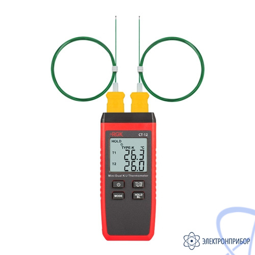 Полезные функции. Специальная индикация оповещает специалиста о ненадлежащем подключении или неисправности термопары. Двухканальный цифровой термометр RGK CT-12 также сообщает о превышении предела измерений и низком уровне заряда элементов питания. Измерение пиковой и средней температуры упрощает реализацию различных сценариев проверки, особенно при работе с крупными объектами.