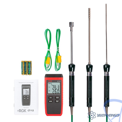 Описание контактного термометра с зондом температуры воздуха, поверхностным зондом и погружным зондом температуры RGK CT-12+TR-10A+TR-10S+TR-10W: