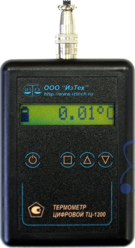 Цифровой термометр состоит из первичного преобразователя температуры (датчика) и электронного цифрового измерительного блока. Отображение результатов измерений температуры осуществляется на ЖК-дисплее. Также на дисплее отображается уровень заряда батарей. Питание термометра осуществляется от двух элементов «AA». Для предотвращения разряда батарей в ТЦ-1200 предусмотрена функция автоматического отключения питания.