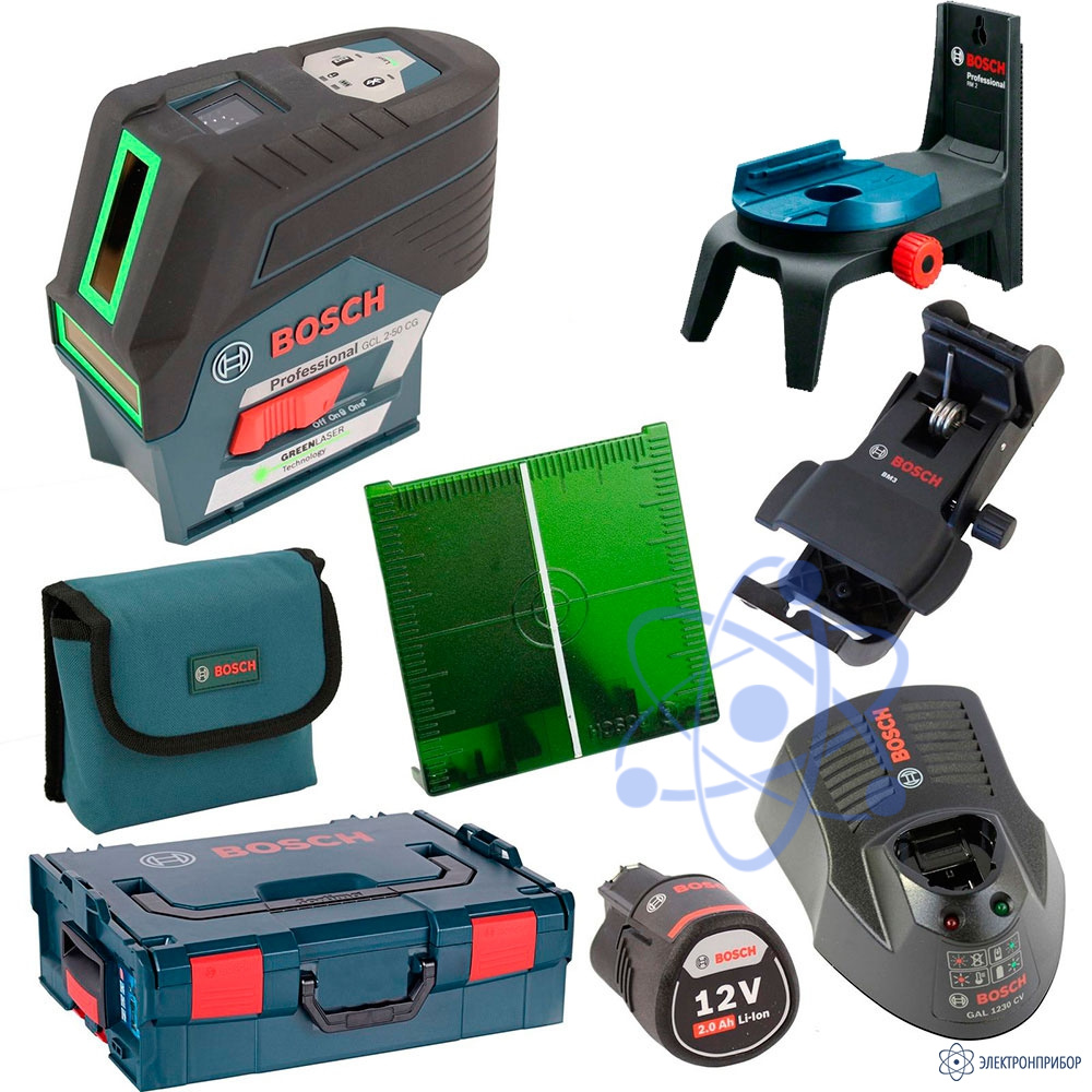 Описание лазерного уровеня Bosch GCL 2-50 CG + RM 2 (12 V) + потолочная клипса + L-Boxx: