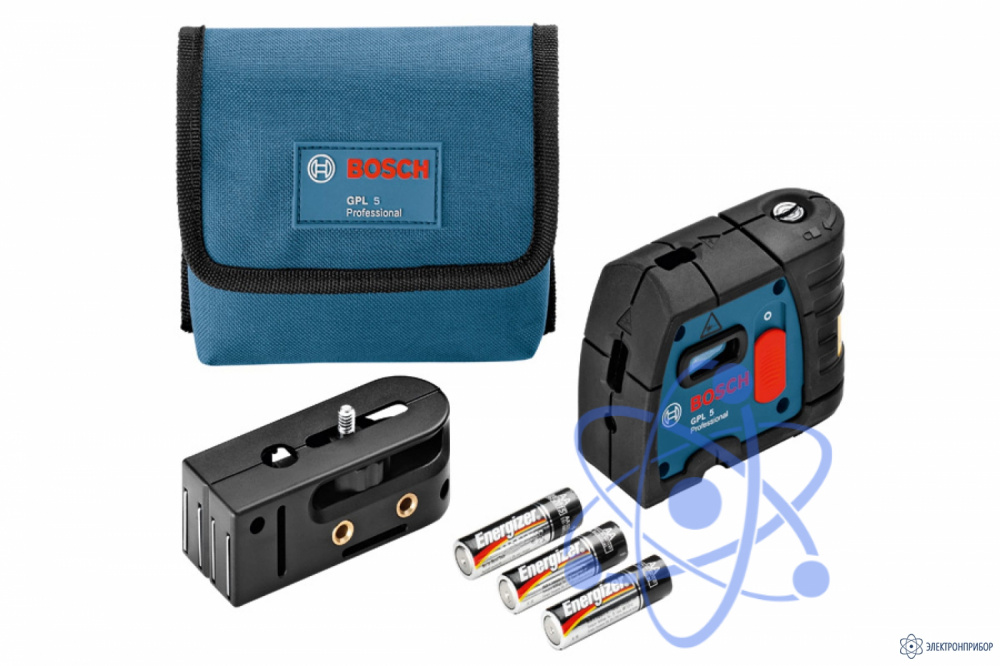 Конструкция Bosch GPL 5 позволяет проецировать пять взаимоперпендикулярных осей: вперёд, направо, налево, вниз и вверх. Благодаря этому с помощью нивелира легко осуществляется построение прямых углов, перенесение опорных точек с пола на потолок и т.п. Отсутствие в конструкции рассеивающих призм, которые снижают интенсивность излучения в линейных построителях, позволяет заметно увеличить дальность действия прибора.