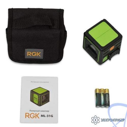 Электропитание лазерного уровня RGK ML-31G осуществялется с использованием стандартных щелочных или алкалиновых элементов питания ААА-типа. В приборе используются три батареи этого, при этом продолжительность работы составляет 3,5 часа.