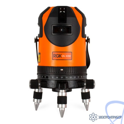 Лазерный нивелир RGK UL-44W с высокой точностью проецирует четыре вертикальные и горизонтальную плоскость, причём последнюю устройство проецирует с развёрткой на 360°. Поворотный корпус прибора, оснащённый горизонтальным лимбом и двумя винтами наводки, позволяет точно перенести вертикальную плоскость на заданный угол. Усиленный лазер, которым оснащён лазерный уровень RGK UL-44W, обеспечивает яркую, чёткую линию, хорошо различимую даже при ярком освещении. Рабочая дистанция нивелира достигает 20 метров в помещении и 50 метров – с использованием приёмника лазерного излучения, позволяющего эффективно работать с нивелиром даже на улице даже в солнечный день.