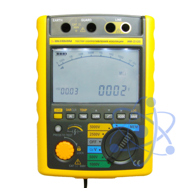 Актаком AM-2125 - это программируемый портативный прибор для испытания сопротивления изоляции электрооборудования до 1,2 ТОм тестовым напряжением до 5000 В (DC); измерения токов утечки, напряжения и температуры. Возможности прибора существенно расширяет наличие встроенного регистратора.