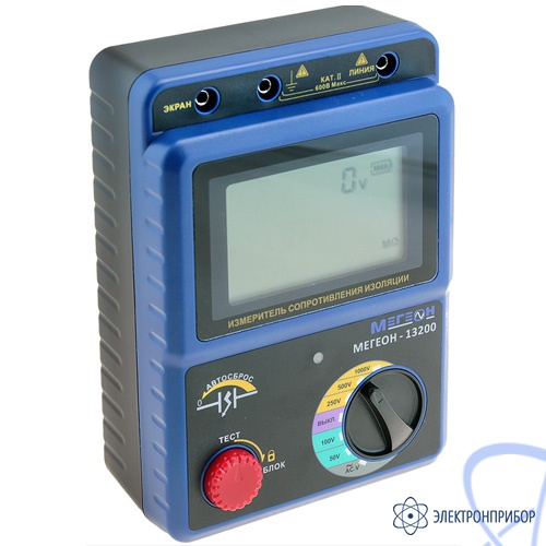 Измеритель сопротивления изоляции МЕГЕОН 13200 представляет собой портативный прибор для измерения сопротивления изоляции с использованием высоких значений испытательных напряжений ( до 1000 Вольт).