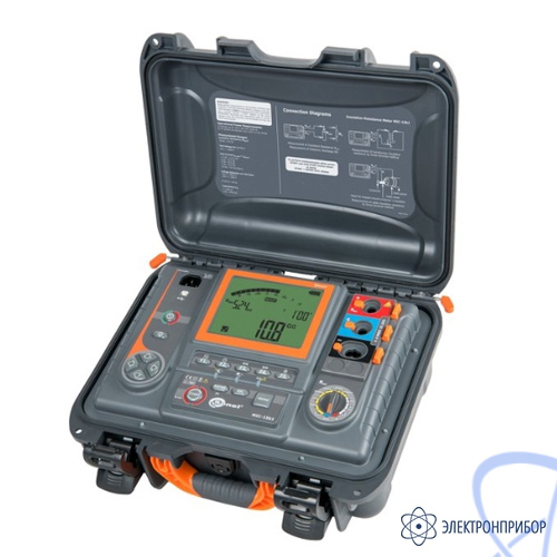 MIC-15k1 – цифровой мегаомметр, предназначенный для испытаний электрической прочности и измерения сопротивления изоляции электроустановок системы электроснабжения под действием электромагнитного поля сверхвысокого класса напряжения. Максимальное измерительное напряжение составляет 15000 В постоянного тока с диапазоном измеряемого сопротивления до 40 ТОм. Установка трёх интервалов времени позволяет автоматически рассчитывать коэффициент абсорбции (увлажнённости), поляризации (старения) и коэффициент разряда диэлектрика. В процессе измерения сопротивления изоляции происходит измерение ёмкости и тока утечки. Электромагнитные помехи, благодаря встроенному цифровому фильтру, не влияют на результат измерений.