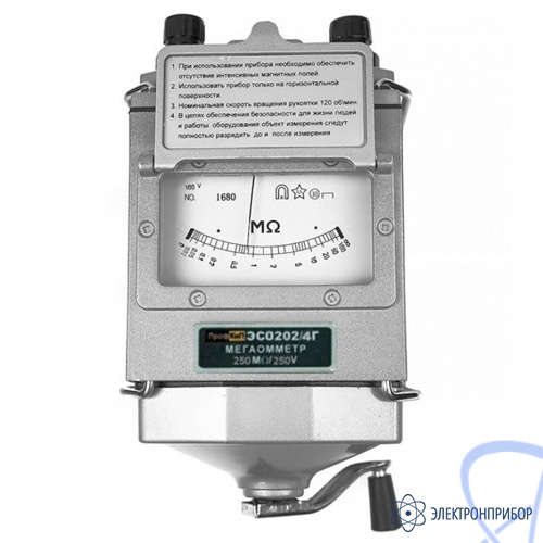 Мегаомметр ПрофКиП ЭСО202/4Г (измеритель сопротивления изоляции ПрофКиП ЭСО202/4Г) предназначен для измерения сопротивления изоляции электрических цепей, не находящихся под напряжением. Мегаомметр ПрофКиП ЭСО202/4Г применяются для измерения сопротивления изоляции электрической проводов, кабелей, разъёмов, трансформаторов, обмоток электрических машин и других устройств, а также для измерения поверхностных и объемных сопротивлений изоляционных материалов. Питание мегаомметра ПрофКиП ЭСО202/4Г осуществляется от встроенного электромеханического генератора.