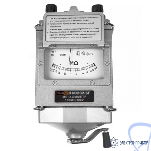 Мегаомметр ПрофКиП ЭСО202/5Г (измеритель сопротивления изоляции ПрофКиП ЭСО202/5Г) предназначен для измерения сопротивления изоляции электрических цепей, не находящихся под напряжением. Мегаомметр ПрофКиП ЭСО202/5Г применяются для измерения сопротивления изоляции электрической проводов, кабелей, разъёмов, трансформаторов, обмоток электрических машин и других устройств, а также для измерения поверхностных и объемных сопротивлений изоляционных материалов. Питание мегаомметра ПрофКиП ЭСО202/5Г осуществляется от встроенного электромеханического генератора.