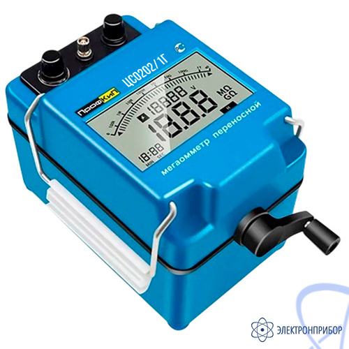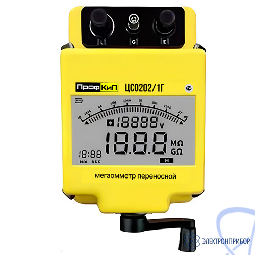 Мегаомметры переносные ПрофКиП ЦС0202/1Г предназначены для измерения электрического сопротивления постоянного тока при проверке параметров изоляции. Мегаомметры применяются для оперативного контроля сопротивления и параметров изоляции, при настройке, испытаниях и обслуживании промышленного оборудования и электросетей, оснащения мастерских, предприятий и организаций, обслуживающих электросети. Особенностью мегаомметров ПрофКиП ЦС0202/1Г является отсутствие необходимости использовать стороннее питание в виде гальванических элементов, батарей аккумуляторов и т д, так как питание электронной схемы и элементов ЖК дисплея осуществляется от генератора с механическим приводом. Приборы выпускаются в качестве современной замены мегаомметров серий М4100, ЭСО202, ЦС0202 украинского производства.