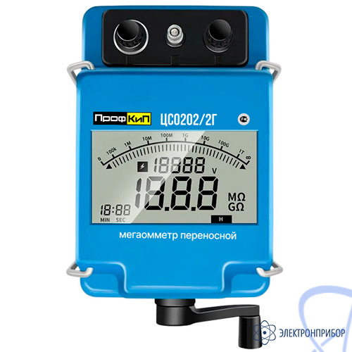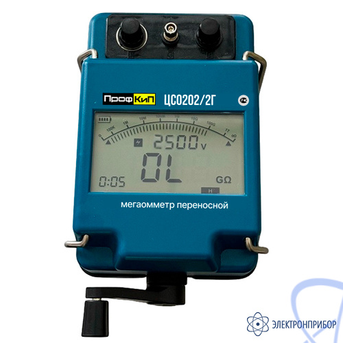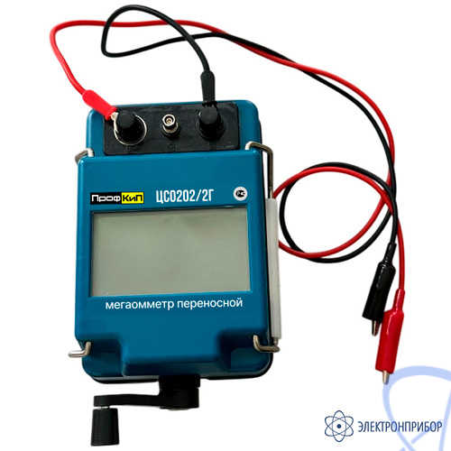 Мегаомметры переносные ПрофКиП ЦС0202/2Г предназначены для измерения электрического сопротивления постоянного тока при проверке параметров изоляции. Мегаомметры применяются для оперативного контроля сопротивления и параметров изоляции, при настройке, испытаниях и обслуживании промышленного оборудования и электросетей, оснащения мастерских, предприятий и организаций, обслуживающих электросети. Особенностью мегаомметров ПрофКиП ЦС0202/2Г является отсутствие необходимости использовать стороннее питание в виде гальванических элементов, батарей аккумуляторов и т д, так как питание электронной схемы и элементов ЖК дисплея осуществляется от генератора с механическим приводом. Приборы выпускаются в качестве современной замены мегаомметров серий М4100, ЭСО202, ЦС0202 украинского производства.