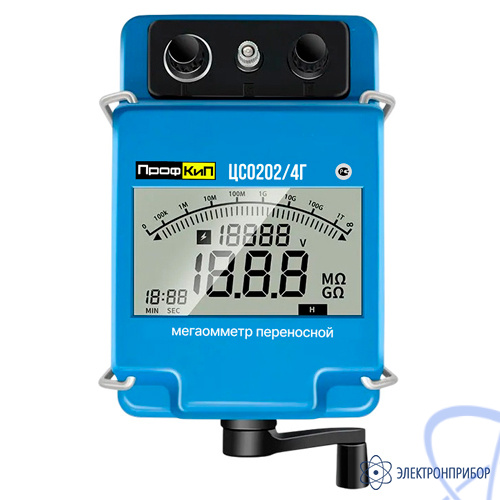 Мегаомметры переносные ПрофКиП ЦС0202/4Г предназначены для измерения электрического сопротивления постоянного тока при проверке параметров изоляции. Мегаомметры применяются для оперативного контроля сопротивления и параметров изоляции, при настройке, испытаниях и обслуживании промышленного оборудования и электросетей, оснащения мастерских, предприятий и организаций, обслуживающих электросети. Особенностью мегаомметров ПрофКиП ЦС0202/4Г является отсутствие необходимости использовать стороннее питание в виде гальванических элементов, батарей аккумуляторов и т д, так как питание электронной схемы и элементов ЖК дисплея осуществляется от генератора с механическим приводом. Приборы выпускаются в качестве современной замены мегаомметров серий М4100, ЭСО202, ЦС0202 украинского производства.