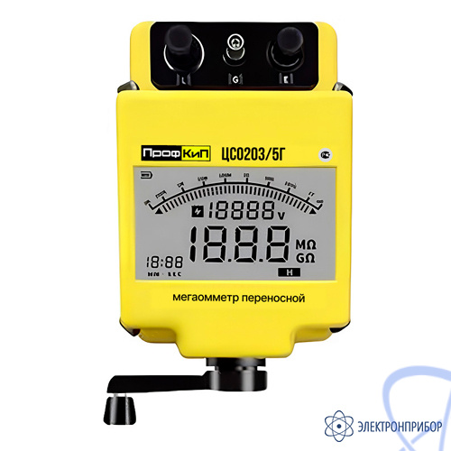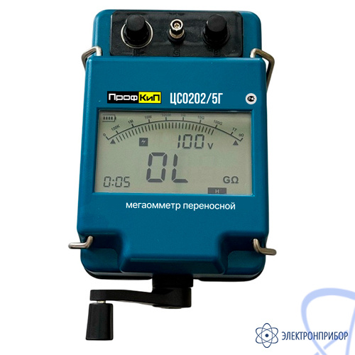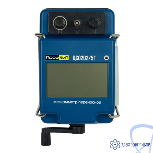 Мегаомметры переносные ПрофКиП ЦС0202/5Г предназначены для измерения электрического сопротивления постоянного тока при проверке параметров изоляции. Мегаомметры применяются для оперативного контроля сопротивления и параметров изоляции, при настройке, испытаниях и обслуживании промышленного оборудования и электросетей, оснащения мастерских, предприятий и организаций, обслуживающих электросети. Особенностью мегаомметров ПрофКиП ЦС0202/5Г является отсутствие необходимости использовать стороннее питание в виде гальванических элементов, батарей аккумуляторов и т д, так как питание электронной схемы и элементов ЖК дисплея осуществляется от генератора с механическим приводом. Приборы выпускаются в качестве современной замены мегаомметров серий М4100, ЭСО202, ЦС0202 украинского производства.