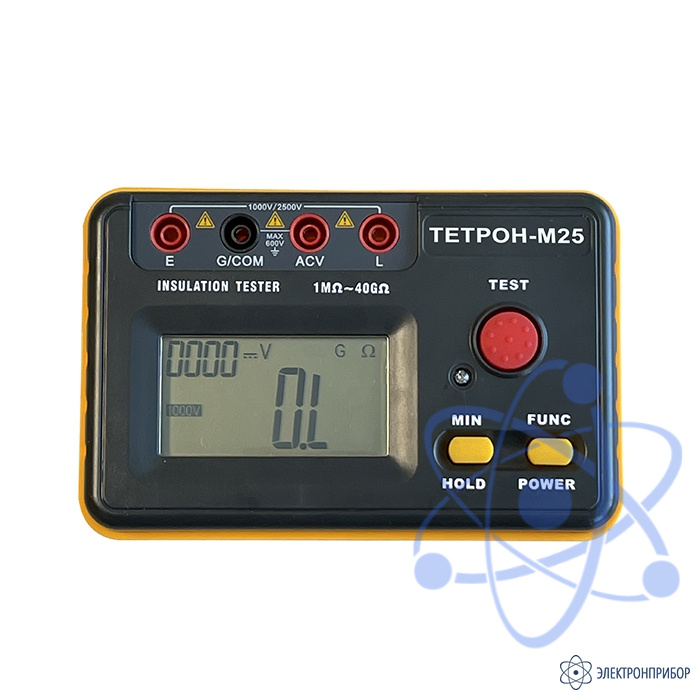 ТЕТРОН-М25 это цифровой мегаомметр, предназначенный для измерения сопротивления электрических цепей и разнообразных диэлектриков, которые применяются для изоляции проводов, кабелей, двигателей и различных электротехнических машин.