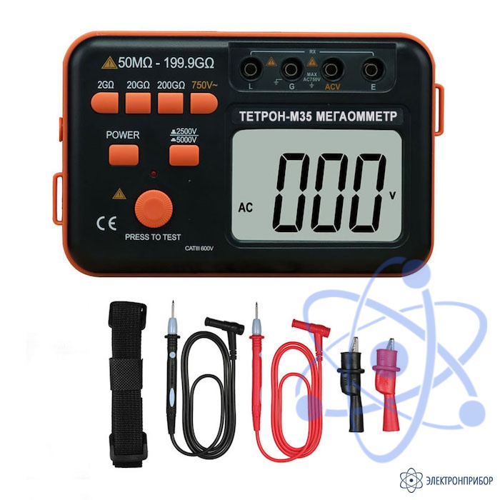 ТЕТРОН-М35 это цифровой мегаомметр, предназначенный для измерения сопротивления электрических цепей и разнообразных диэлектриков, которые применяются для изоляции проводов, кабелей, двигателей и различных электротехнических машин.