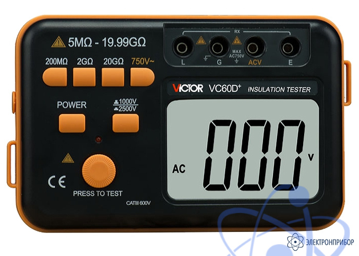 Цифровой измеритель сопротивления изоляции Victor VC60D+ использует преобразование постоянного напряжения (12 В) в высокое постоянное напряжение 1000 В/2500 В и позволяет проверять состояние изоляции путем измерения микроамперного тока при подаче испытательного напряжения, аналогично традиционному мегомметру. В основе регистрирующей части прибора лежит АЦП с двойным интегрированием, дающий еще и дополнительную функцию измерения переменного напряжения.