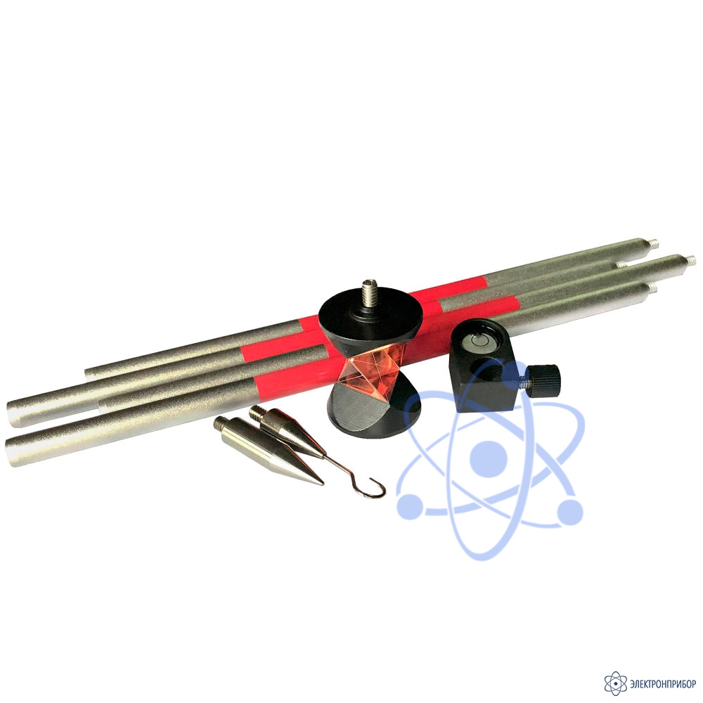 Специальное отражающее покрытие положительно сказывается на качестве результатов и эффективности съемки. Комплектная разборная минивеха позволяет установить призму в широком диапазоне высот. В набор также входит пузырьковый уровень, который можно закрепить на вехе для контроля положения.