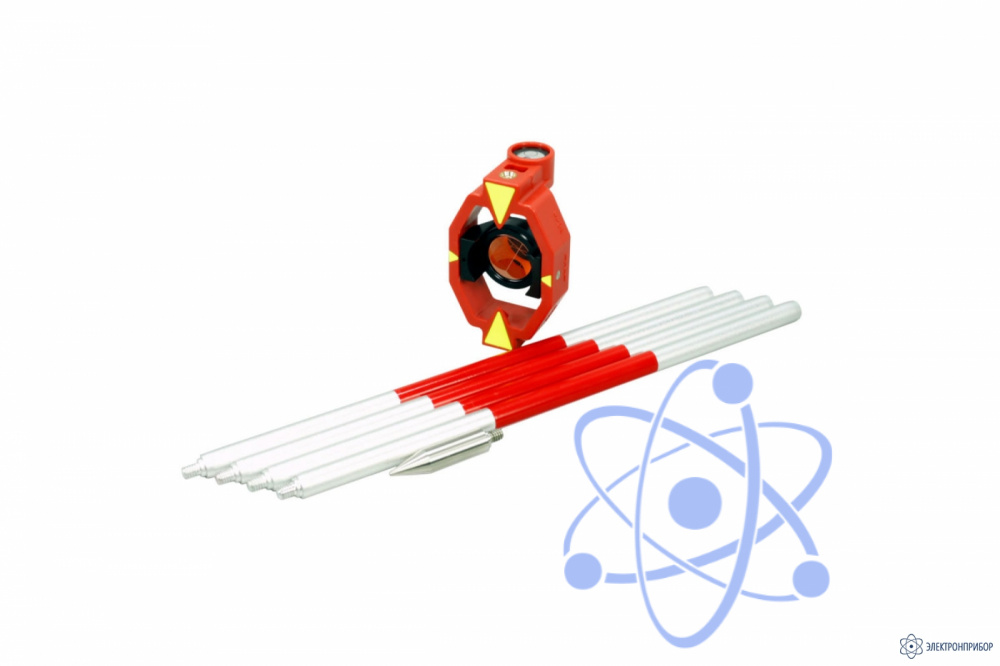 В комплекте поставляется разборная металлическая веха, которая позволяет изменять высоту размещения минипризмы вплоть до 1.3 м. В собранном состоянии конструкция из 4 резьбовых секций надежна и стабильна, элементы вехи качественно окрашены и не подвержены коррозии. Заостренный металлический наконечник обеспечивает надежную установку на рыхлых поверхностях, таких как грунт или песок. Также имеется специальный крючок, при помощи которого можно подвесить отражатель в необходимом положении.