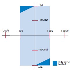 - 4-х квадрантная рабочая область (генерация тока/напряжения или работа в режиме нагрузки)