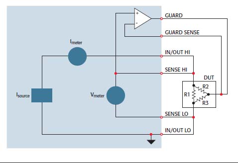 - 6-проводное измерение сопротивления с помощью программируемого источника тока или источника напряжения с V или I зажимом