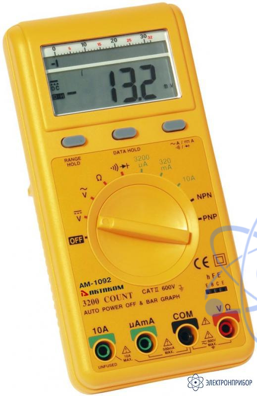 Портативный цифровой мультиметр АМ-1092 с автоматическим выбором диапазонов и имеющий графическую шкалу-32 сегмента.