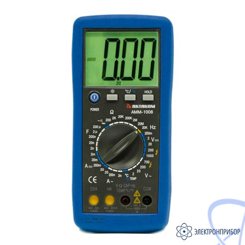 Мультиметр АММ-1008 представляет собой надёжный и недорогой прибор, имеющий широкий набор типичных измерительных функций и большой ЖКИ (2000 отсчётов) с крупными цифрами и подсветкой. Его можно так же применять для диагностики автомобильных цепей и мощных бытовых приборов, благодаря расширенному диапазону тока (кратковременно до 20 А).
