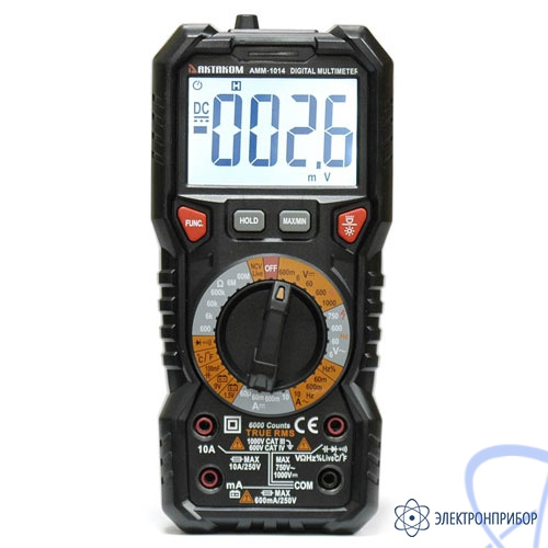 Профессиональный TrueRMS мультиметр АММ-1014 с расширенной функциональностью имеет ЖК дисплей с яркой подсветкой и разрядностью 6000 отсчетов. Прибор имеет входной импеданс до 10 МОм и защиту на всех диапазонах 1000 В постоянного или 750 В переменного напряжения. АММ-1014 позволяет выполнить до 11 стандартных измерительных функций.