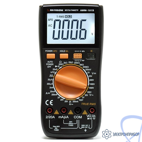 Цифровой мультиметр АММ-1019 представляет собой портативную модель и предлагает пользователям высокую функциональность по доступной цене. Прибор может измерять истинные среднеквадратические значения (True RMS) переменного напряжения и тока, что позволяет корректно проводить измерения несинусоидальных сигналов.