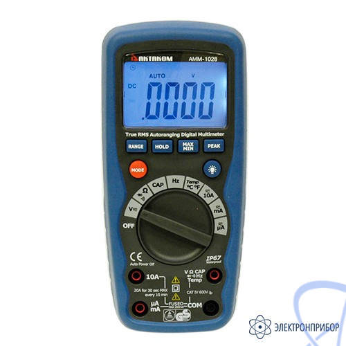 Профессиональный водонепроницаемый True RMS мультиметр АММ-1028 высокой разрядности (11 000 отсчётов) сочетает в себе точность измерений, широкий функционал, простоту эксплуатации, надёжность и безопасность эксплуатации. Прибор имеет высокую степень защиты от пыли и влаги (IP67).
