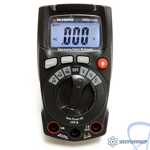 Мультиметр АММ-1042 представляет собой надёжный и недорогой прибор предназначеный для проведения типичных измерений. Он имеет большой ЖК индикатор (1999 отсчётов) с крупными цифрами.