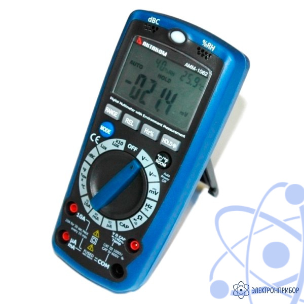 Комбинированный мультиметр "6 в 1" АММ-1062 сочетает в себе функции измерения как электрических так и физических величин: температуры, влажности, уровня шума и освещённости.