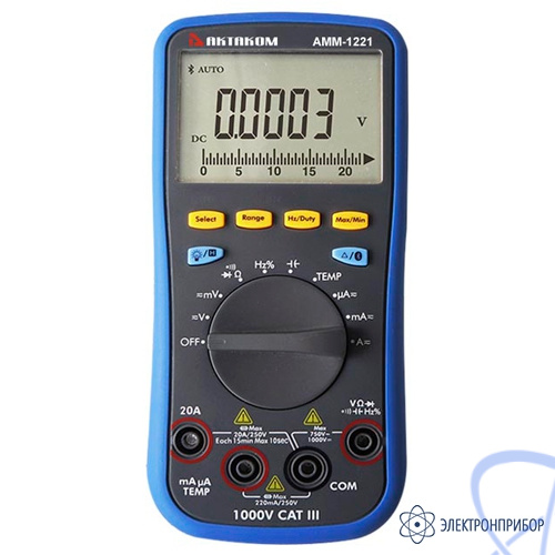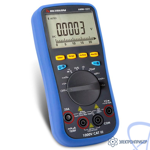 Мультиметр цифровой АММ-1221 обеспечивает прецизионную точность измерения (до 0,1 %) с широкими функциональными возможностями по доступной цене. Прибор имеет возможность измерять истинные среднеквадратические значения (TrueRMS) несинусоидальных сигналов в диапазоне частот от 40 Гц до 10 кГц. Для отслеживания быстрых изменений измеряемых параметров АМ-1221 имеет аналоговую шкалу на дисплее. Мультиметр АММ-1221 имеет регистратор данных и возможность построения трендов в графическом виде.
