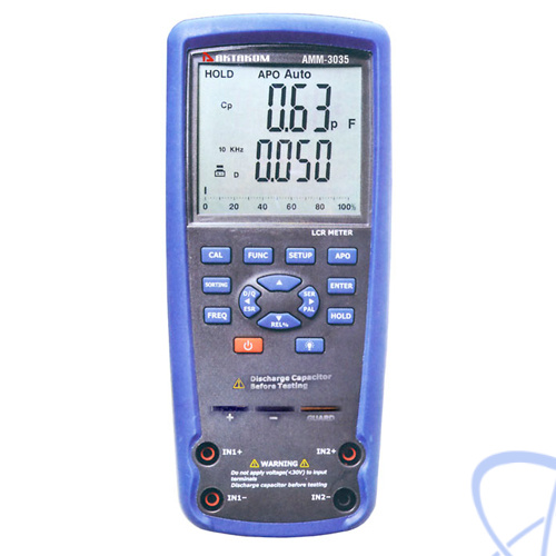 Профессиональный водонепроницаемый RLC-метр АММ-3035 - современный прибор с инновационной технологией автоматического измерения индуктивности, ёмкости, сопротивления, добротности, тангенса угла потерь или фазового угла и режимом определения полярности. Тестовая частота прибора составляет до 100 кГц. Прибор обеспечивает высокую точность измерений, благодаря 4-х/5-ти проводным схемам подключения (щупы Кельвина).