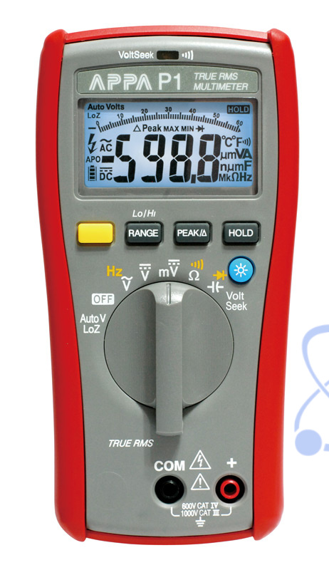 - Измерение переменного (АСV) и постоянного напряжения (DCV) до 600В, частоты, емкости, сопротивления до 40 МОм, испытание p-n переходов, проверка целостности цепи (прозвонка со звуковой и световой сигнализацией);