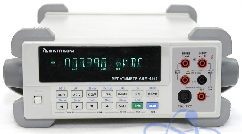 Мультиметр АВМ-4561 предназначен для измерения напряжения и силы постоянного и переменного тока, сопротивления и частоты. Прибор имеет изменяемую разрядность дисплея и позволяет производить измерение постоянной и переменной составляющих в частотном диапазоне до 300 кГц, истинного среднеквадратичного значения (True RMS), сравнение результатов измерений с заданными значениями, проверку диодов и звуковую прозвонку цепи, измерение в децибелах и т.д.