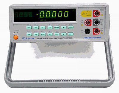 Вольтметр GDM-8245: 5 разрядов, динамический диапазон 50000, СД индикаторы; Мультиметр: Постоянное напряжение (500 мВ ... 1200 В); Переменное напряжение (500 мВ ... 1200 В); Постоянный/Переменный ток (500 мкА ... 20 А); Сопротивление (500 Ом ... 20 МОм); Емкость (5 нФ ... 50 мкФ); Частота (10 Гц ... 200 кГц); Прозвон цепи; Испытание P-N перехода; Базовая погрешность ± 0,03 %; Разрешение: 10 мкВ, 10 нА, 10 мОм; Измерение переменного сигнала со смещением (AC+DC); Измерение с учетом формы сигнала и искажений (True RMS); Рабочая полоса частот до 100 кГц; Измерение в дБм, мин/макс, удержание, ?-измерения; Автоматическая установка нуля; Автоматический и ручной выбор предела; Масса 1,86 кг.