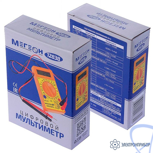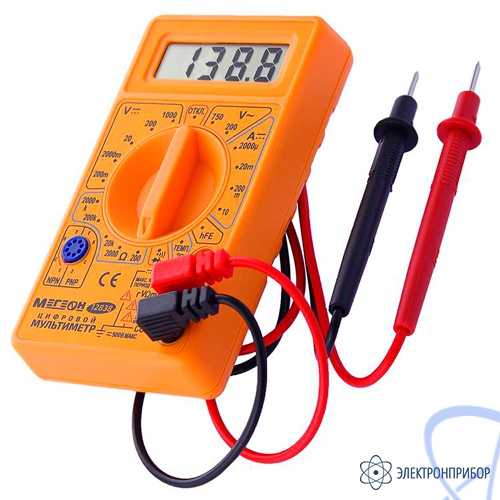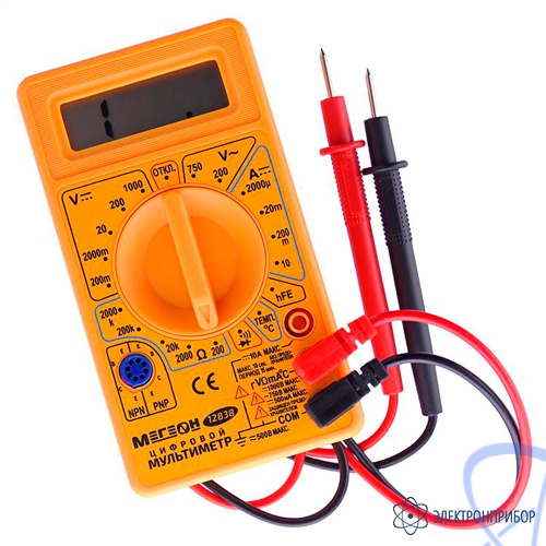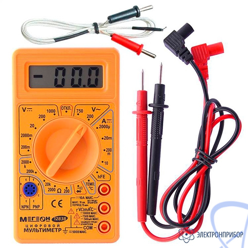 МЕГЕОН 12838 – это многофункциональный цифровой измерительный прибор, который найдет широкое применение благодаря богатым функциональным возможностям при небольших габаритах и весе. Мультиметр оснащен большим высококонтрастным дисплеем и удобным переключателем режимов. Автоматическое определение полярности тока дополнительно упростят выполнение измерений. Система контроля состояния батареи своевременно сообщит о необходимости ее замены, что минимизирует погрешности. Наличие предохранителя позволит снизить риск выхода из строя при перегрузке и неправильных действиях пользователя. Функция измерения температуры и коэффициента передачи транзисторов значительно расширит спектр применений. Мультиметр станет Вашим незаменимым помощником в домашней мастерской, лаборатории и производстве.