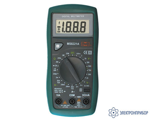 Цифровой мультиметр MS8221 с автоматическим выбором пределов измерения позволяет производить измерения величин силы постоянного и переменного тока, постоянного и переменного напряжения, сопротивления, емкости конденсаторов, частоты синусоидального сигнала, температуры окружающей среды в широком диапазоне.