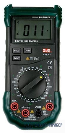Цифровой мультиметр MS8261 позволяет измерять значения силы тока постоянного и переменного напряжения, значения постоянного и переменного напряжения, сопротивления, ёмкости конденсаторов и коэффициент усиления биполярных транзисторов.