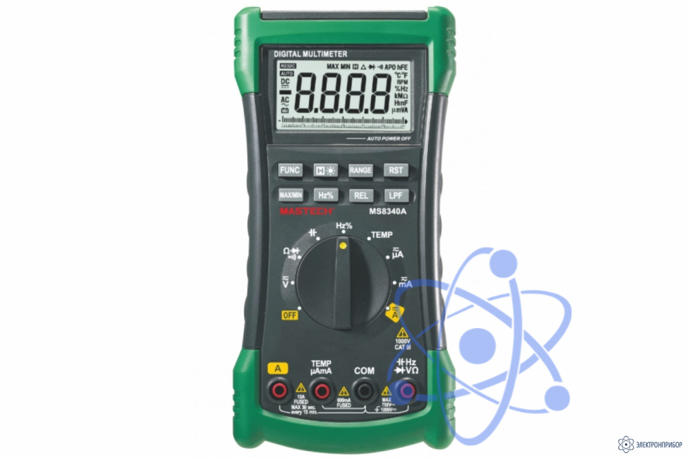 Цифровой мультиметр Mastech MS8340A 00-00006398 используется для измерений большого количества параметров: напряжения, силы тока, сопротивления, емкости, частоты и температуры. Выбор функции осуществляется удобным переключателем.