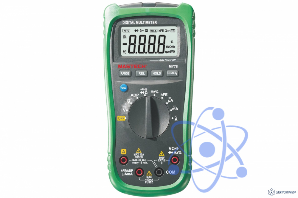 Цифровой автоматический мультиметр Mastech MY78 00-00005950 – компактный, стабильный и надежный ручной прибор с автоматическим выбором предела измерения и максимальным отображаемым значением 4000.