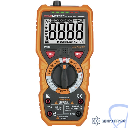 PM18 – это портативный многофункциональный цифровой мультиметр с функцией измерения среднеквадратического значения True RMS, оснащенный большим ЖК-дисплеем с задней подсветкой для удобства считывания показания, и фонарем. PM18 имеет функцию защиты от перегрузки и индикацию разряженной батареи.